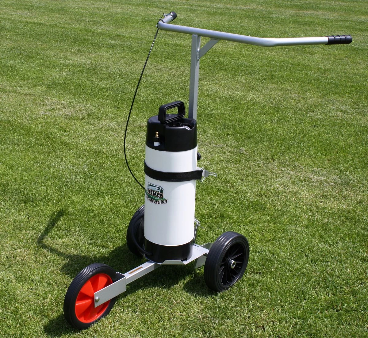 Brouette de traçage peinture par pulvérisation pour une largeur de traçage de 5 à 12 cm, capacité 8.5 litres, pour le traçage de terrains engazonnés.