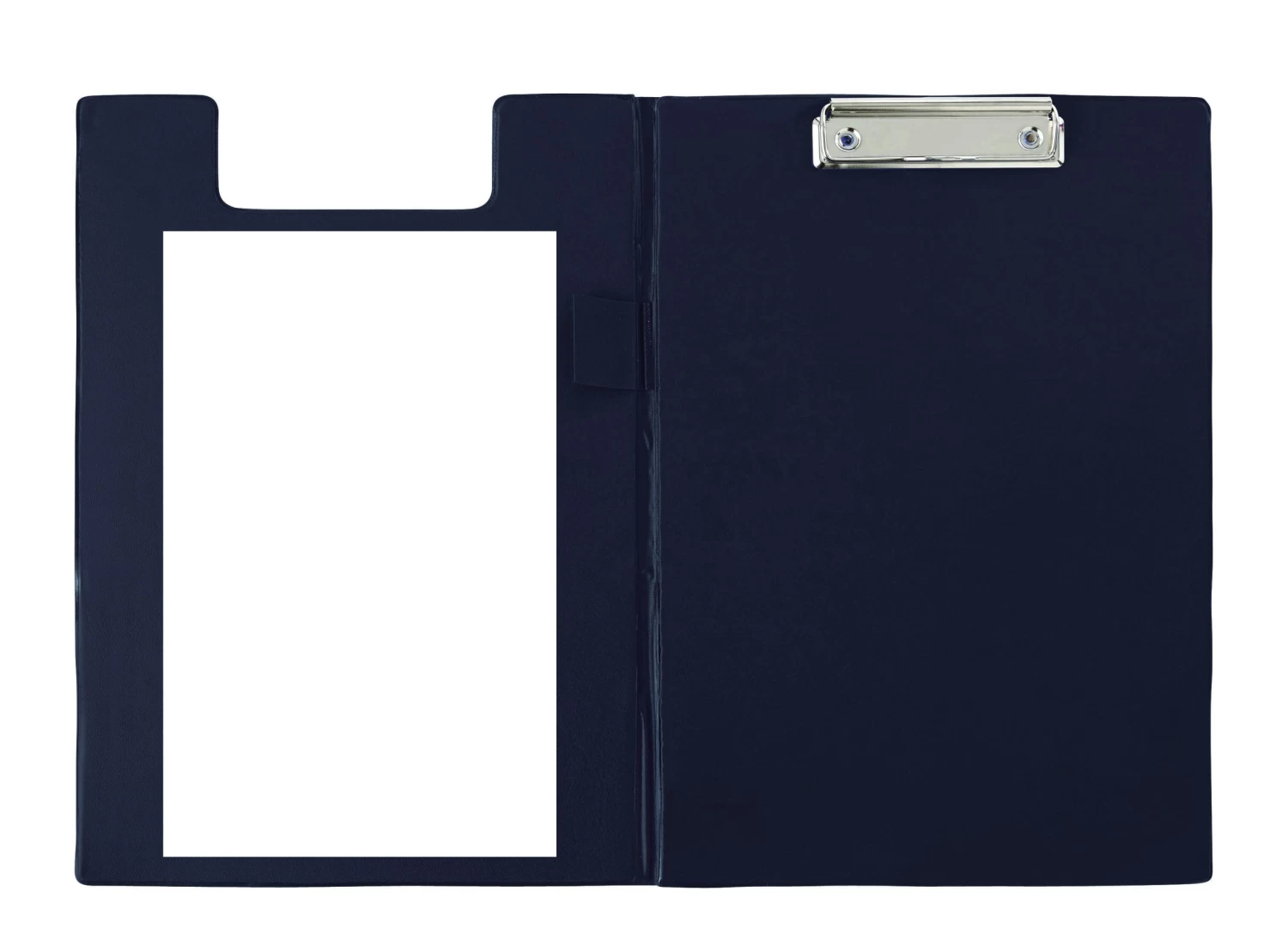 Face intérieure effaçable + face avec un clip pour maintenir des feuillets – Livré sans feuilllet et sans feutre –