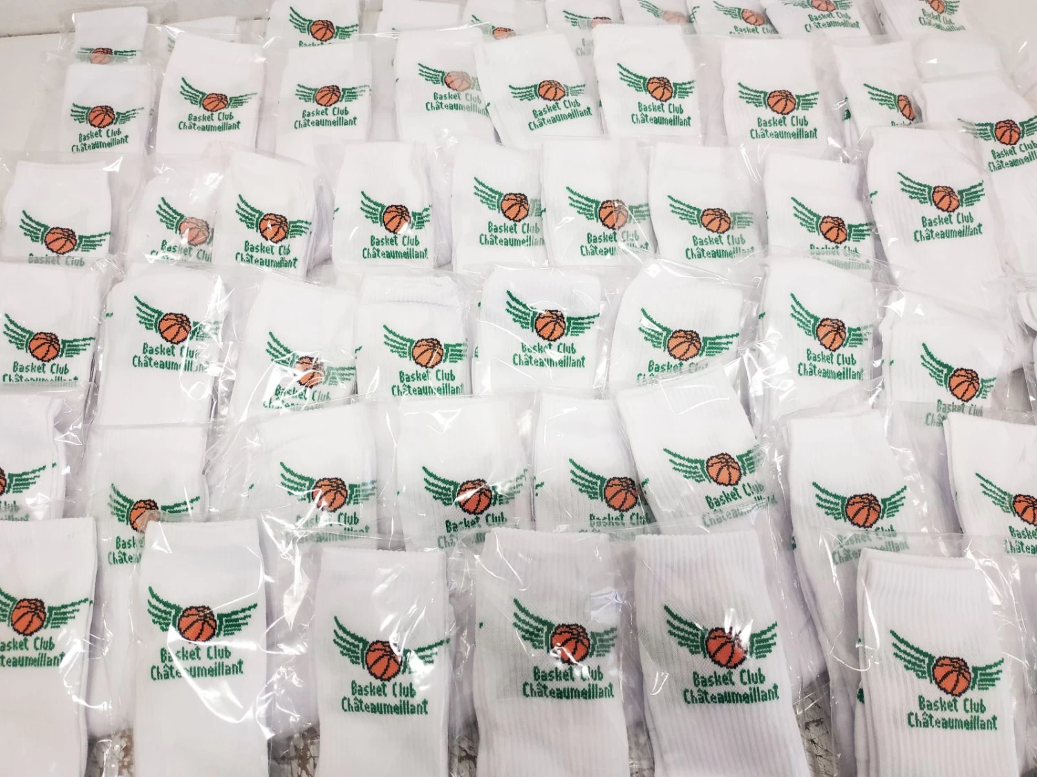 Nous vous proposons des chaussettes de basket-ball personnalisées aux couleurs et logo de votre club.