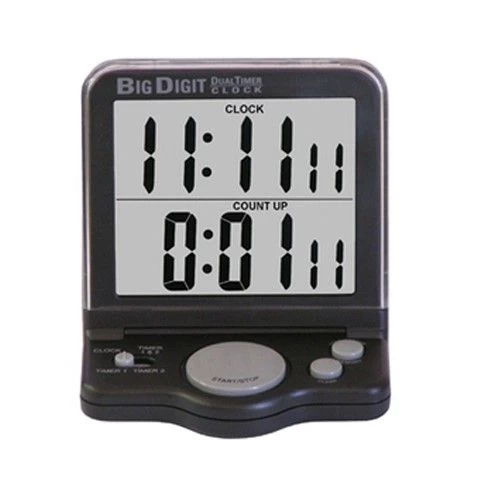 Grand affichage, 2 écrans simultanés : Horloge et chronomètre, compte à rebours.