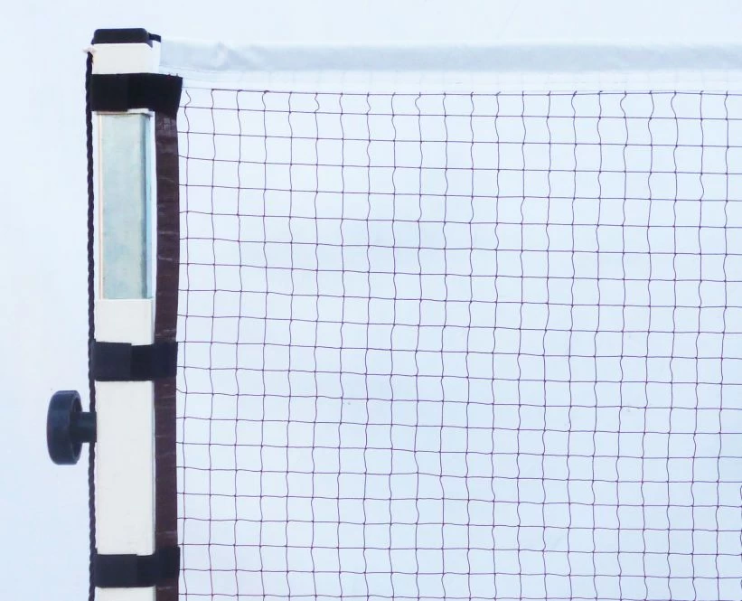Filet de badminton Dimensions: 6,1 x 0,76m Maille de 19 mm, couleur noir Entièrement renforcé sur le périmètre Anti-UV Bande PVC en haut Pour tous les poteaux de badminton. Fixation avec velcro et cable.