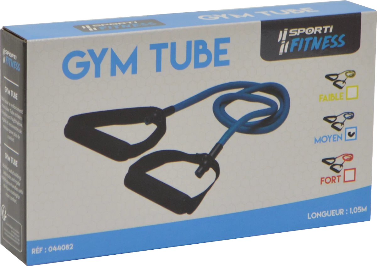 Gym tube en latex. Idéal pour le travail de renforcement musculaire. Existe en 3 forces (light, medium et strong).