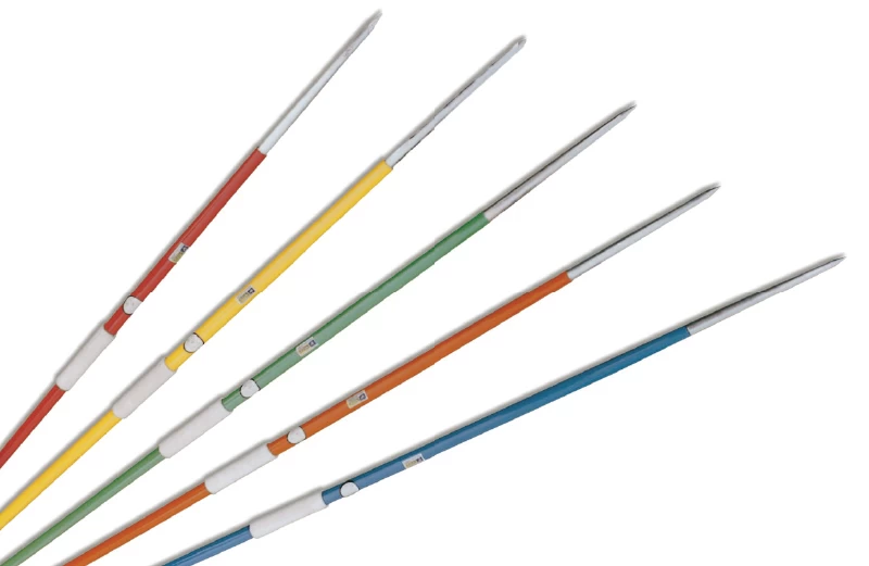 Javelots fabriqués en alliage avec pointe en acier chromé. Poignée en corde, et finition peinture métallique. Disponible en 6 poids (300gr, 400gr, 500gr, 600gr, 700gr et 800gr)