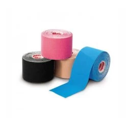 Bande adhĂ©sive Ă©lastique sur support papier pour taping. La bande skinTape n’est pas agressive pour la peau, elle est en revanche respirante et  » waterproof » Rouleaux 5cm x 5m