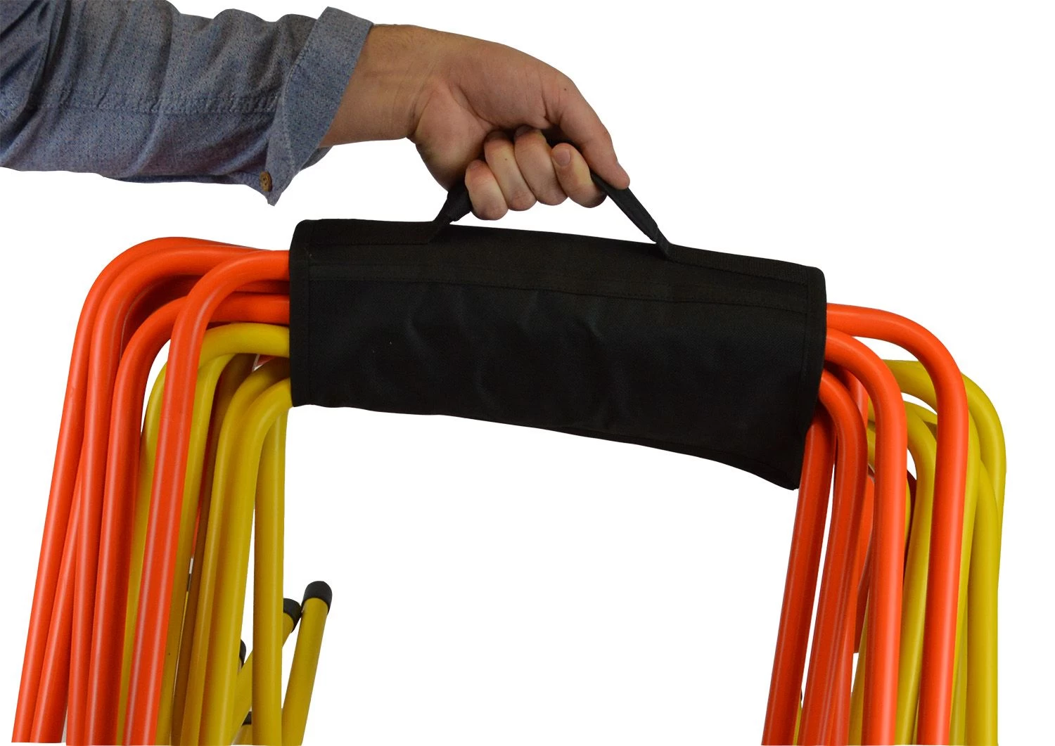 Muni d’une poignée de transport et d’un large velcro, il vous facilitera le transport de vos haies et de vos cerceaux.