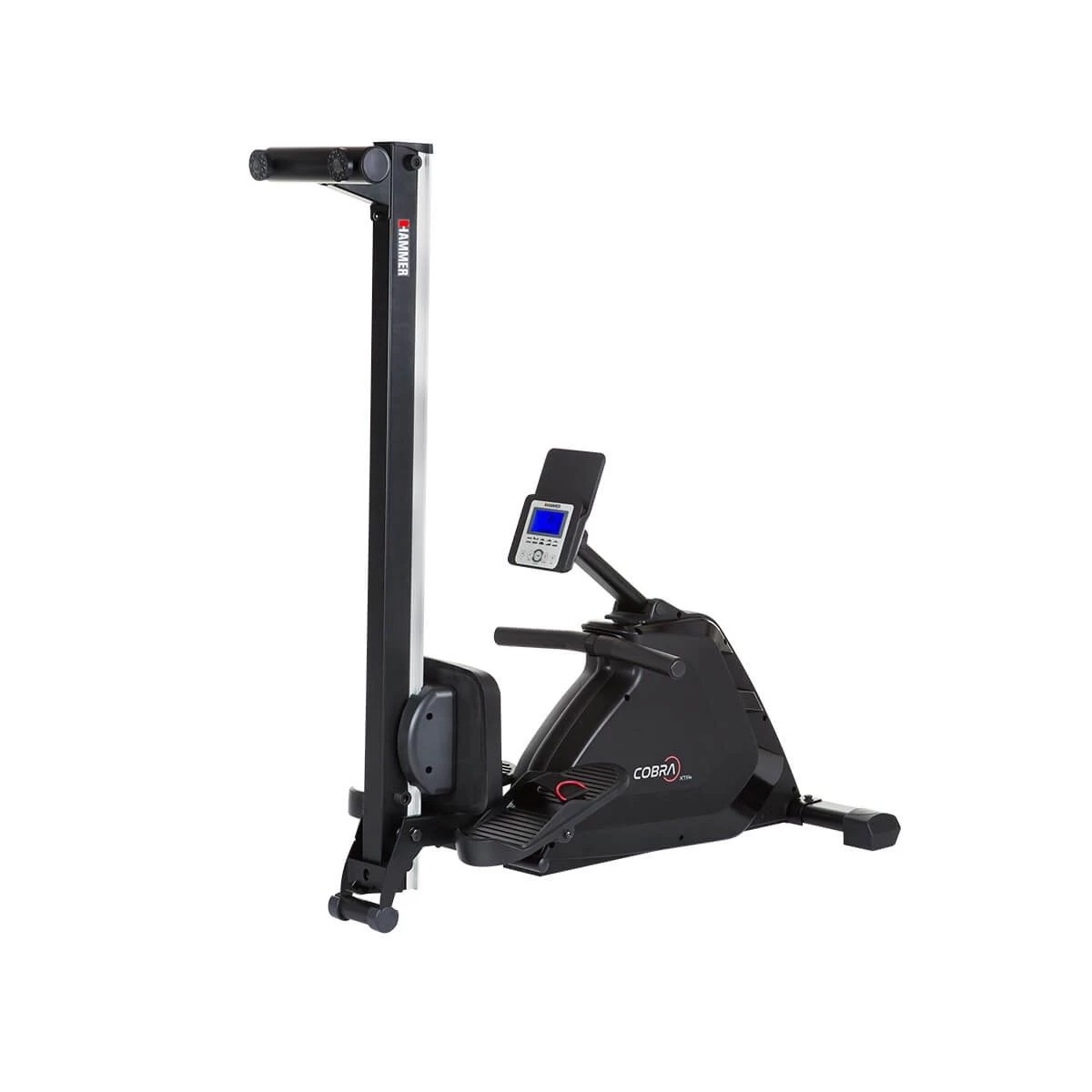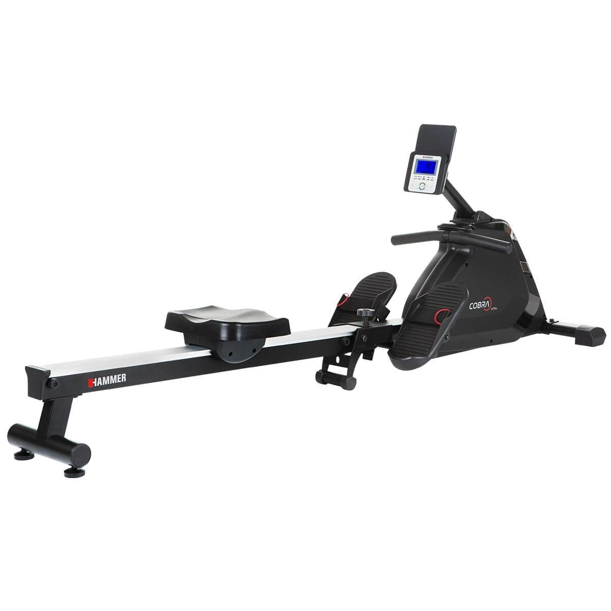 Avec le rameur HAMMER Cobra XTR II Plus, vous pouvez réaliser votre rêve de ramer sans vous mouiller. Vous pouvez vous concentrer sur la formation pour vous-même en toute tranquillité! Rapidement mis en place, vous pouvez transformer votre salon en club d’aviron en quelques secondes. Après l’entraînement, le rail de roulement peut être facilement plié grâce à la fonction d’inclinaison innovante et rangé de manière peu encombrante avec le repose-pied pratique et le verrou de transport. Grâce aux rouleaux de transport intégrés, vous pouvez déplacer votre rameur Cobra XTR II Plus dans la pièce.