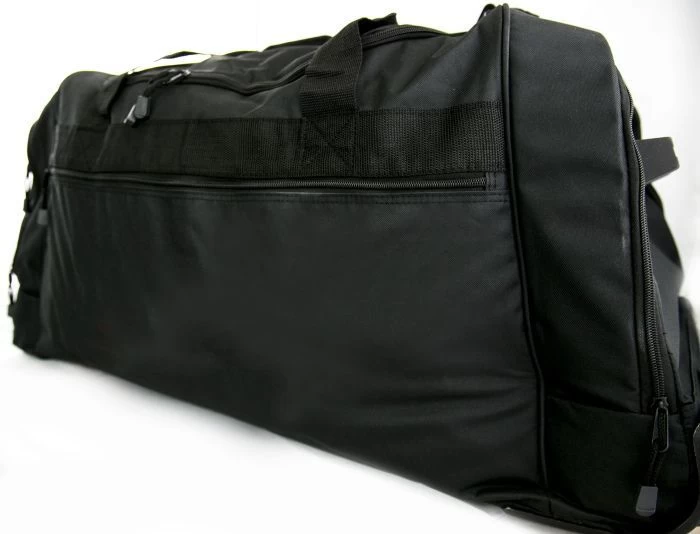 Ce sac de transport avec roue et indispensable pour aller à vos entraînements sans vous fatiguer. Grand compartiment central avec une fermeture éclair. Taille: 86 x 35 x 37cm Couleur : Noir Les plus de ce produit : 2 compartiments latéraux qui permettent de trier vos affaires. Sur le devant une poche utile vous permettra de retrouver facilement des petits objets comme les clés, téléphone, etc. Une bandoulière ajustable rembourrée pour un confort maximal ainsi que la durabilité.