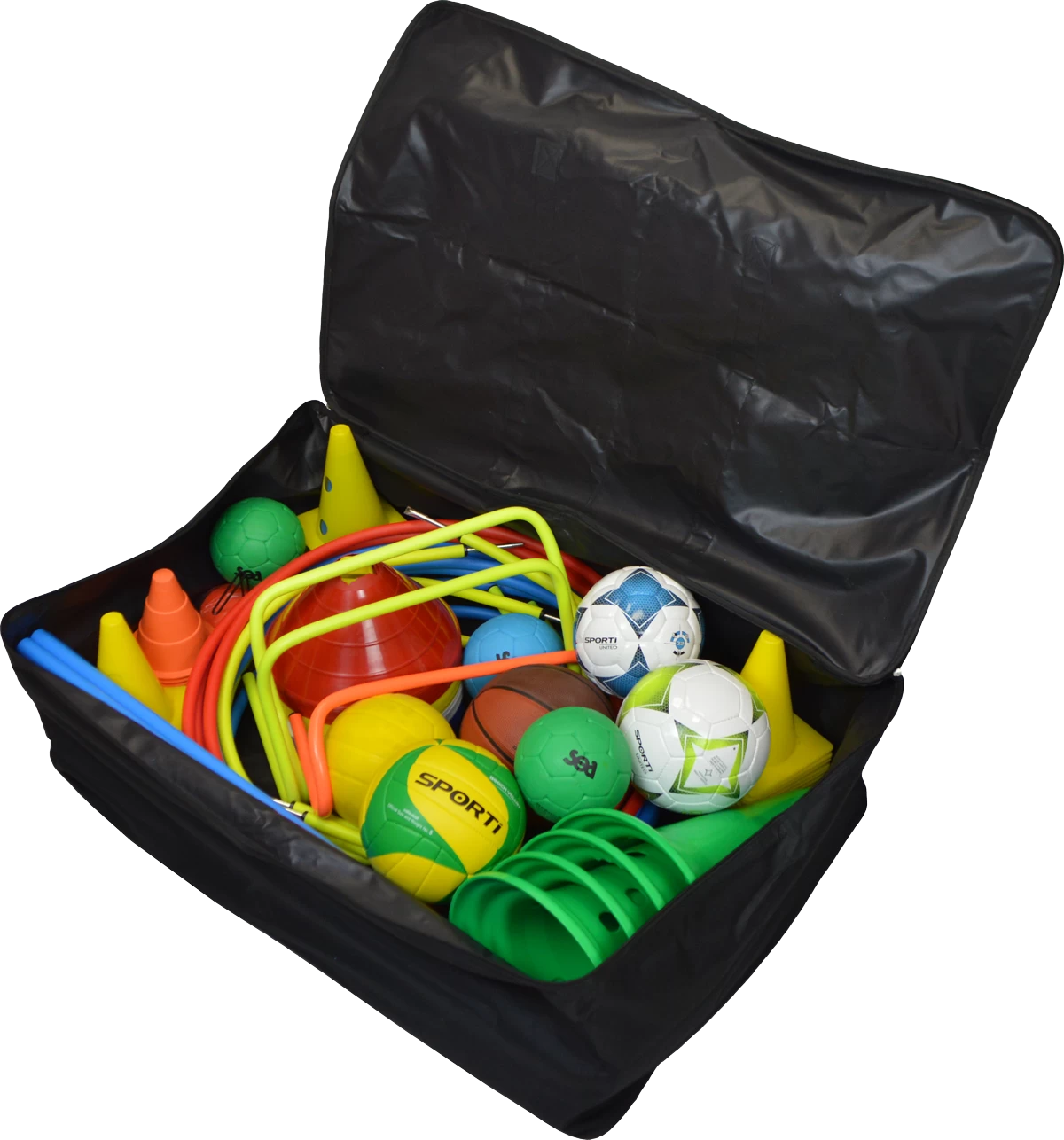 Sac multi-sports en nylon 600 deniers. Grande capacitĂ©, il peut aisĂ©ment accueillir tout type de matĂ©riel (cerceaux, jalons, mini-haies,…Plus lĂ©ger et plus maniable qu’un chariot. Coloris assortis noir ou rouge (Dans la limite des stocks disponibles)