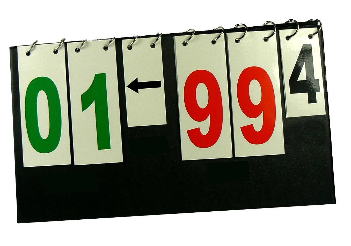 Scoreur multisport pliable, composĂ© de 2 chiffres de 0 Ă 99, d’un chiffre de 1 Ă 4 et de flèches pour les sens du jeu. Dimensions pliĂ© : 49 x 28cm.