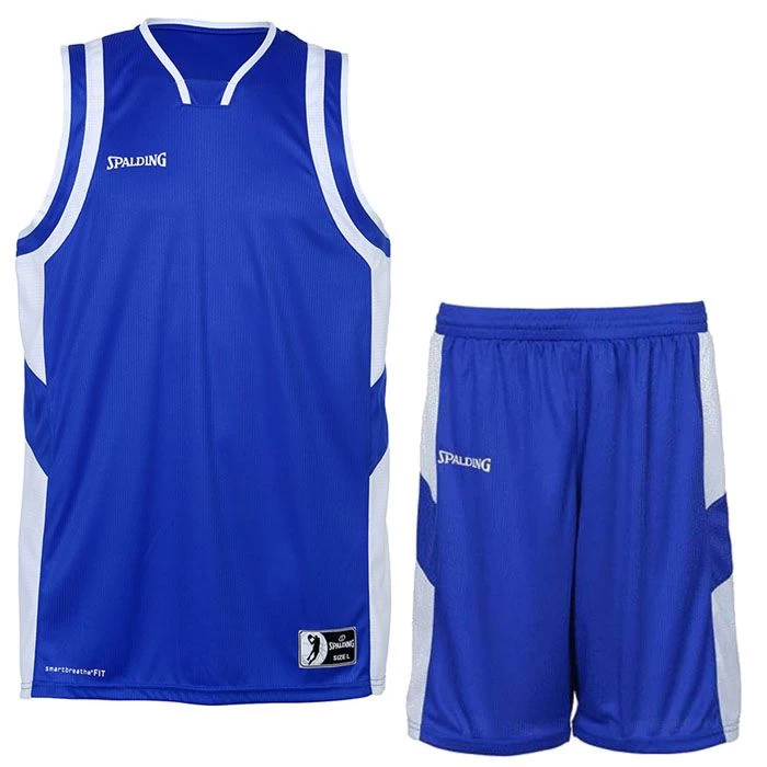 Maillot et short spalding All Star bleus avec marquages: N° coeur + N° dos + Nom dos (Nécessite passage en atelier pour le flocage / comptez une dizaine de jour pour la réception)